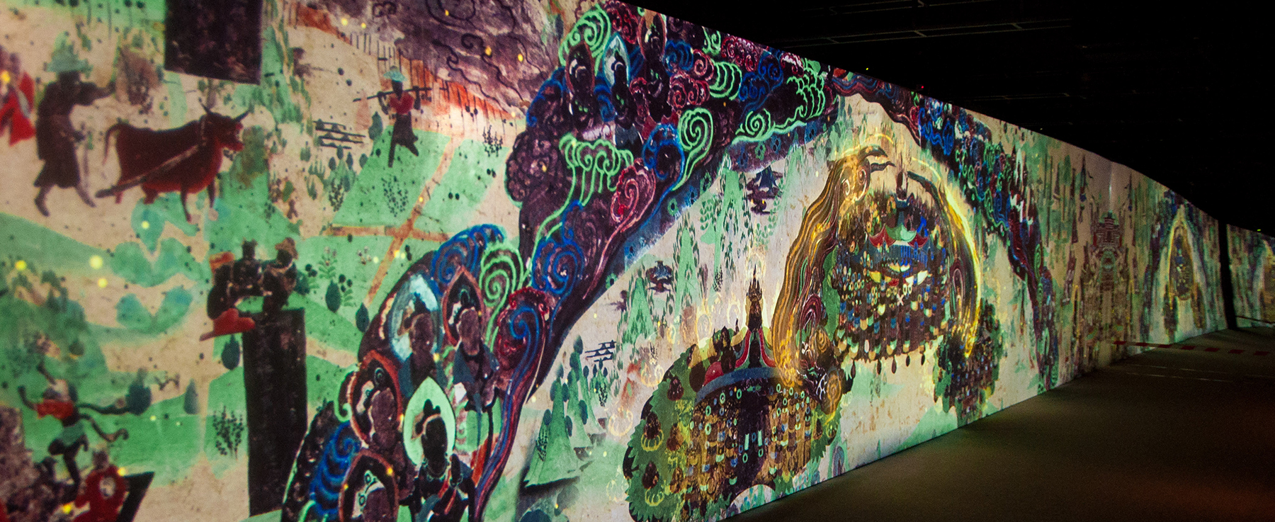 通過視美樂75臺P系列投影機的精彩呈現(xiàn),打造了集裸眼3D、全息投影、多媒體交互等創(chuàng)新運用為一體的佛教文化體驗空間,全面展示了世界佛教文化精髓和我國佛教的發(fā)展歷程。